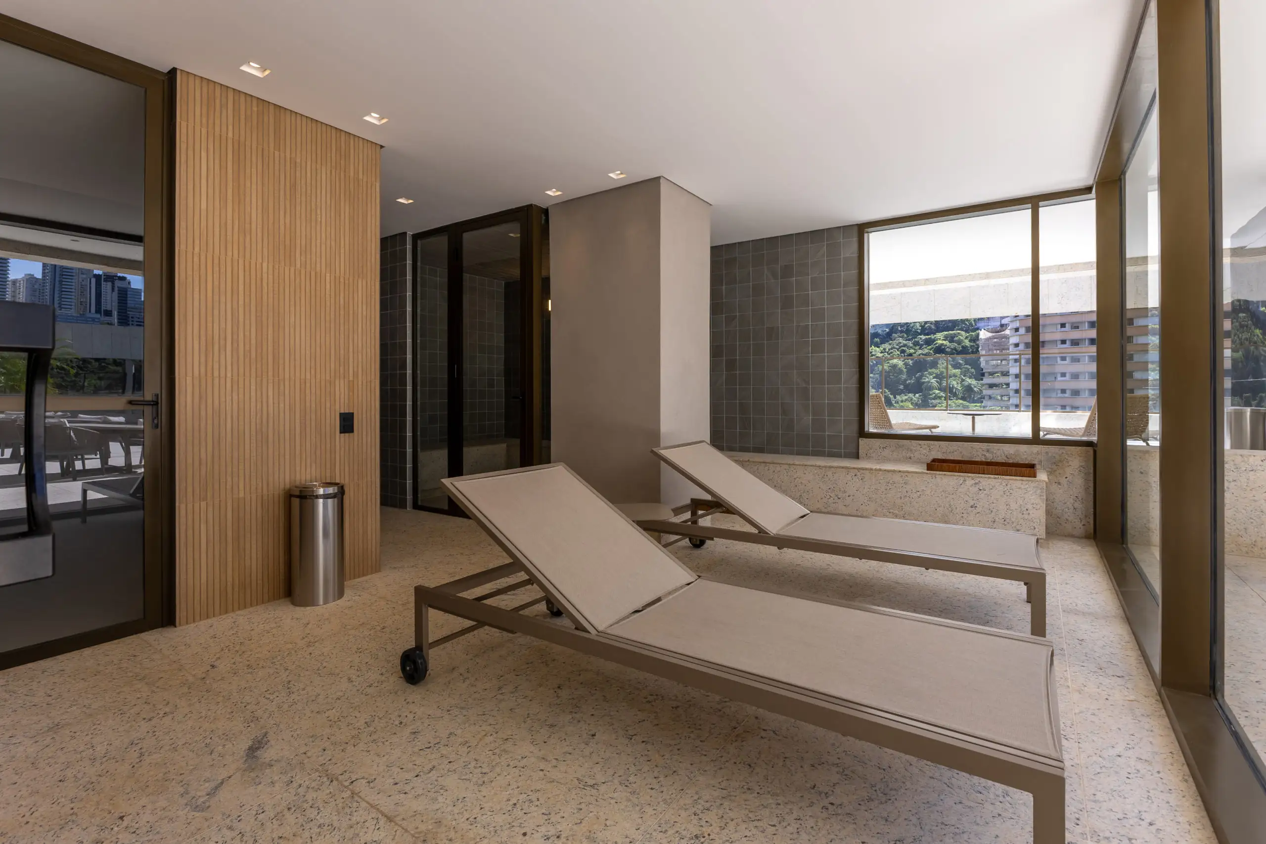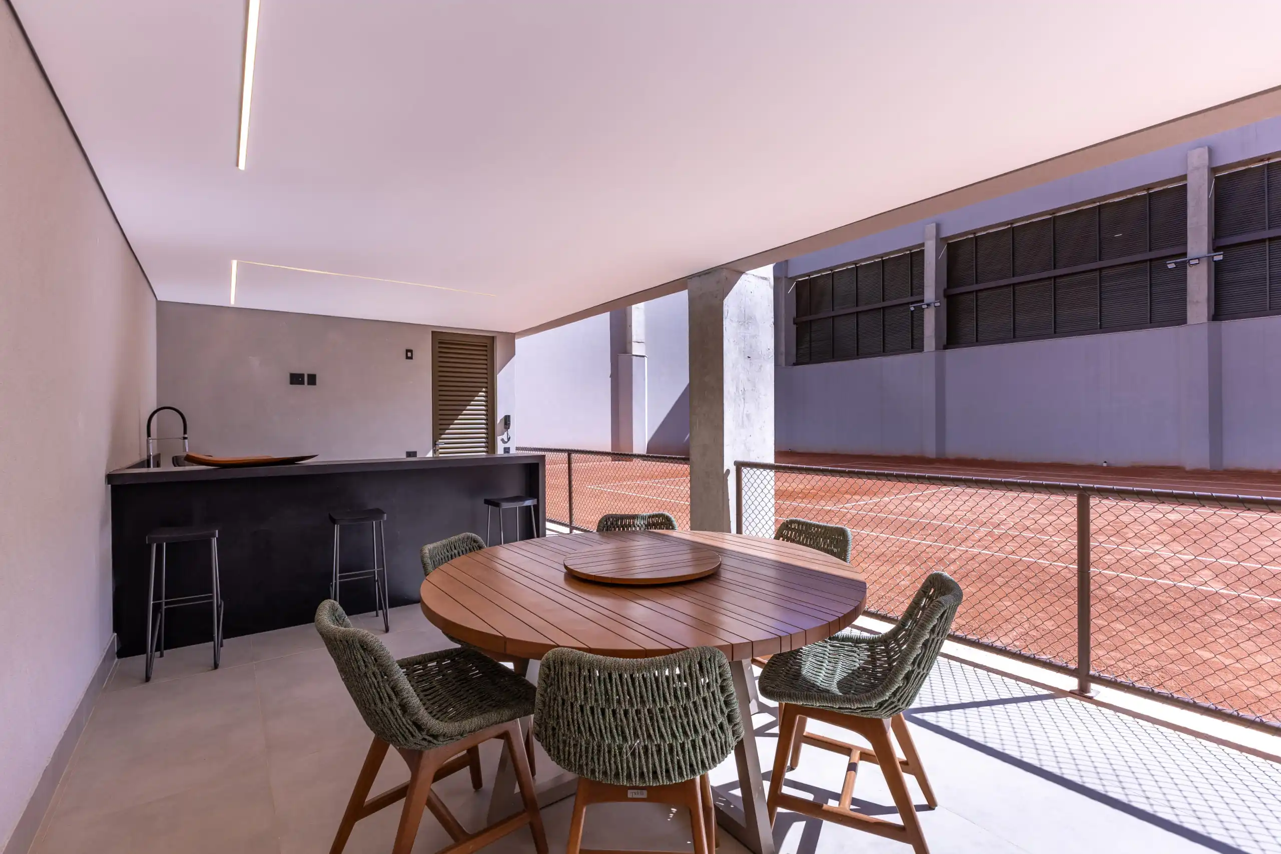 O lazer contempla piscinas adulto e infantil climatizadas, sauna com área de descanso, espaço gourmet e churrasqueira, além de academia equipada e quadra de tênis com dimensões oficiais e lounge exclusivo. O salão de festas, com tratamento acústico e terraço descoberto, oferece um cenário perfeito para celebrações, enquanto o playground e o espaço kids garantem diversão para as crianças.