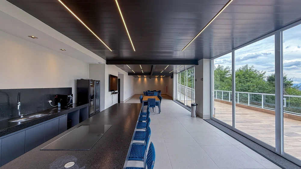 O design privilegia ambientes amplos, com salas que apresentam pé-direito duplo e varandas gourmet generosas. As janelas amplas captam a vista definitiva das montanhas, um dos destaques do empreendimento, situado em um dos pontos mais altos do bairro Vila da Serra.