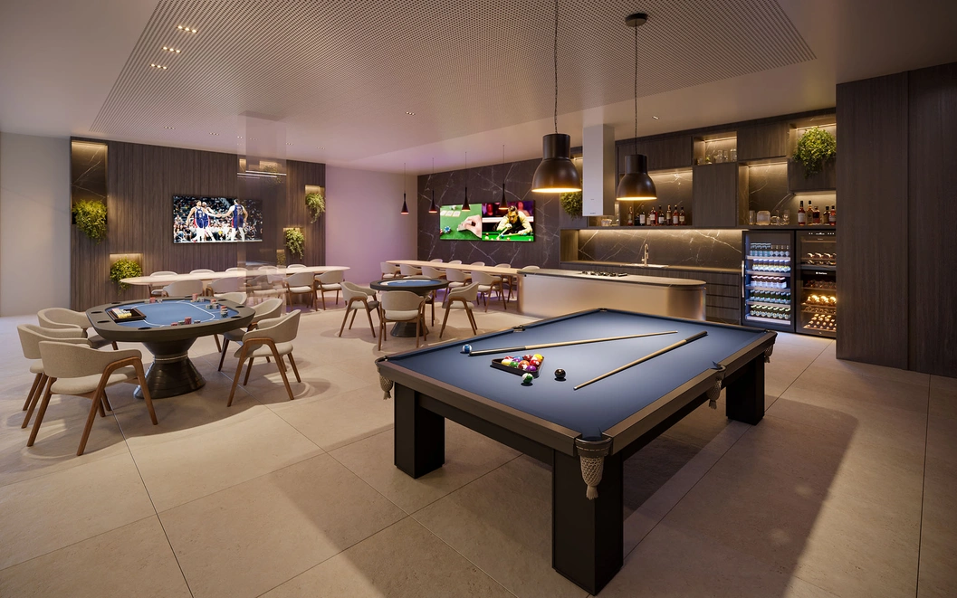 Os moradores do High Gardens desfrutam de uma infraestrutura completa de lazer que atende a todas as idades. Entre as comodidades, destacam-se a piscina com borda infinita aquecida, piscina infantil aquecida, quadras de tênis de saibro, poliesportiva e beach tênis, além de uma academia completa, espaços para yoga e pilates, um spa e sauna relaxantes, e um salão de festas elegante. O condomínio também conta com áreas comuns mobiliadas e decoradas, proporcionando um ambiente acolhedor e sofisticado.