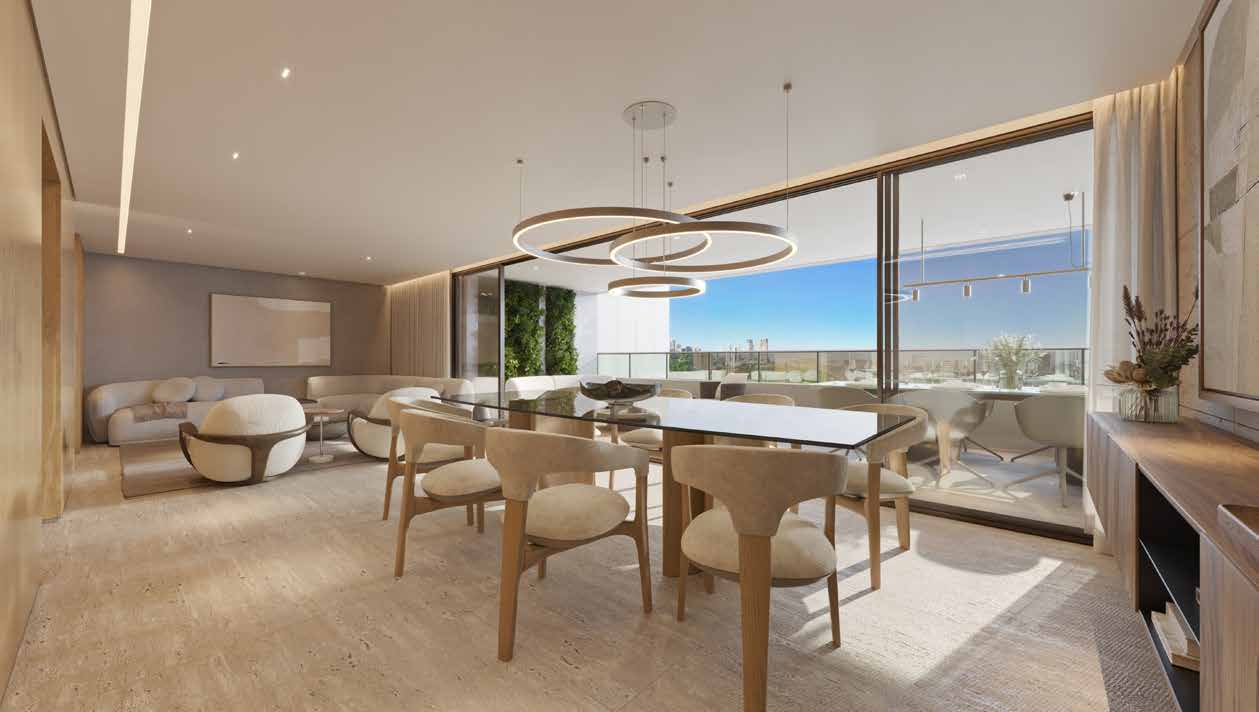 Este apartamento tipo do Città Sereno combina metragem privilegiada de 232,91 m² com uma planta inteligente de 4 suítes, projetada para famílias que exigem espaço, privacidade e alto padrão construtivo no Vale do Sereno, em Nova Lima. Com sala de estar e jantar integradas, cozinha contemporânea e varanda gourmet com vista para a cidade, cada ambiente foi pensado para proporcionar o melhor da vida condominal de luxo.
