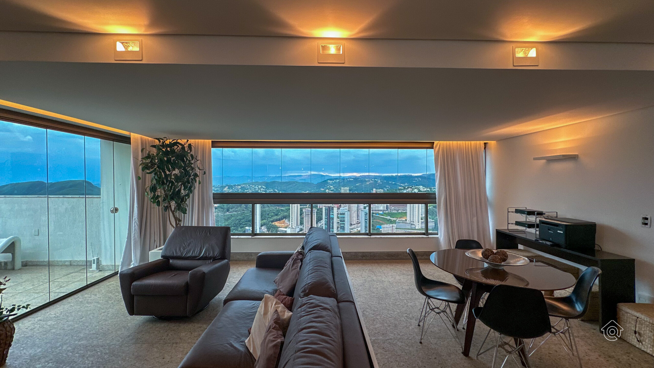 No segundo pavimento, a cobertura ostenta uma sala de TV com projeto de iluminação além disso, oferece uma vista espetacular.