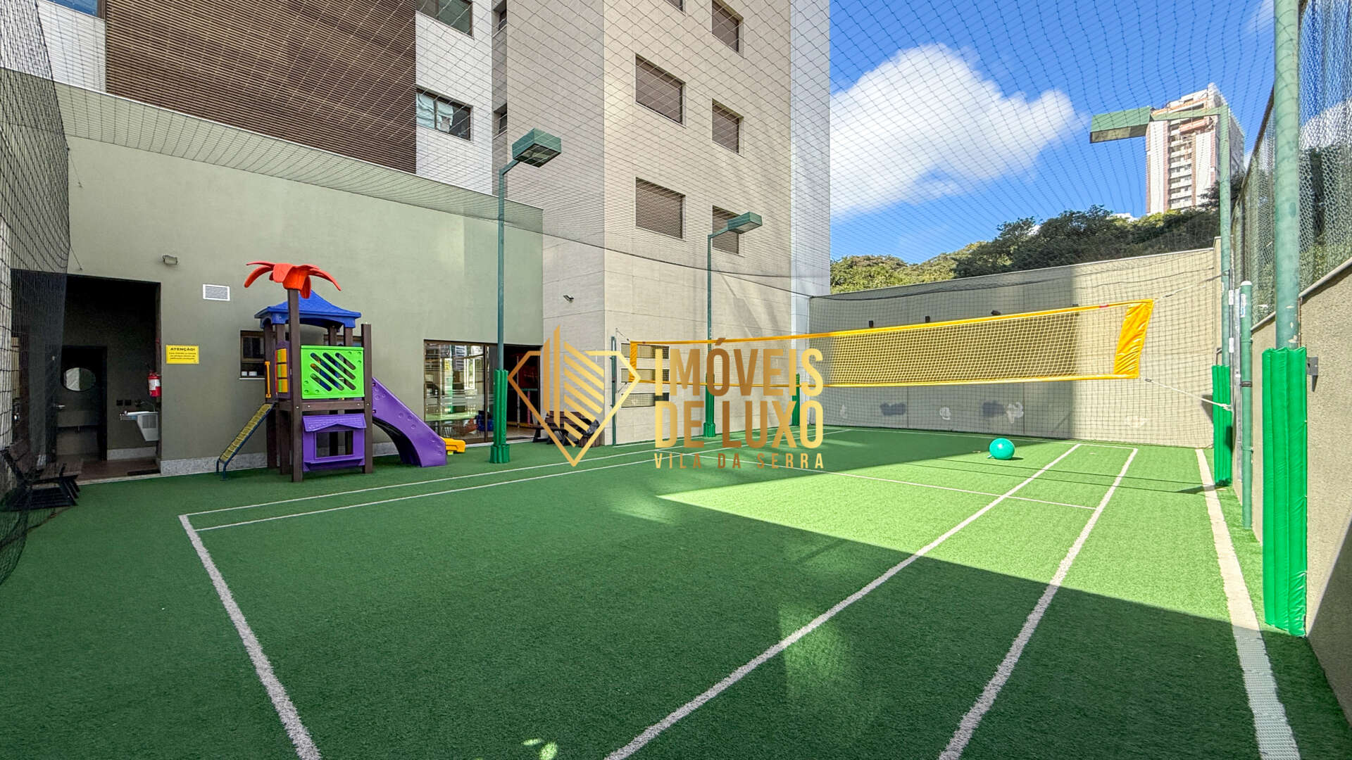 Quadra de esportes e playground ao ar livre
