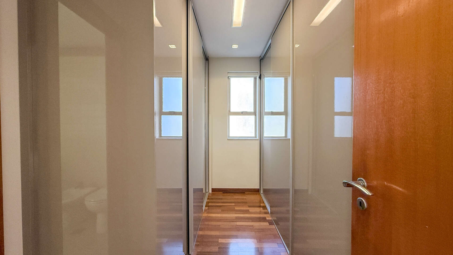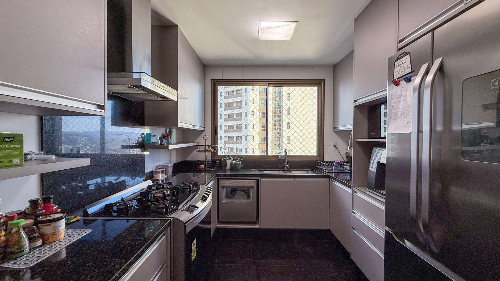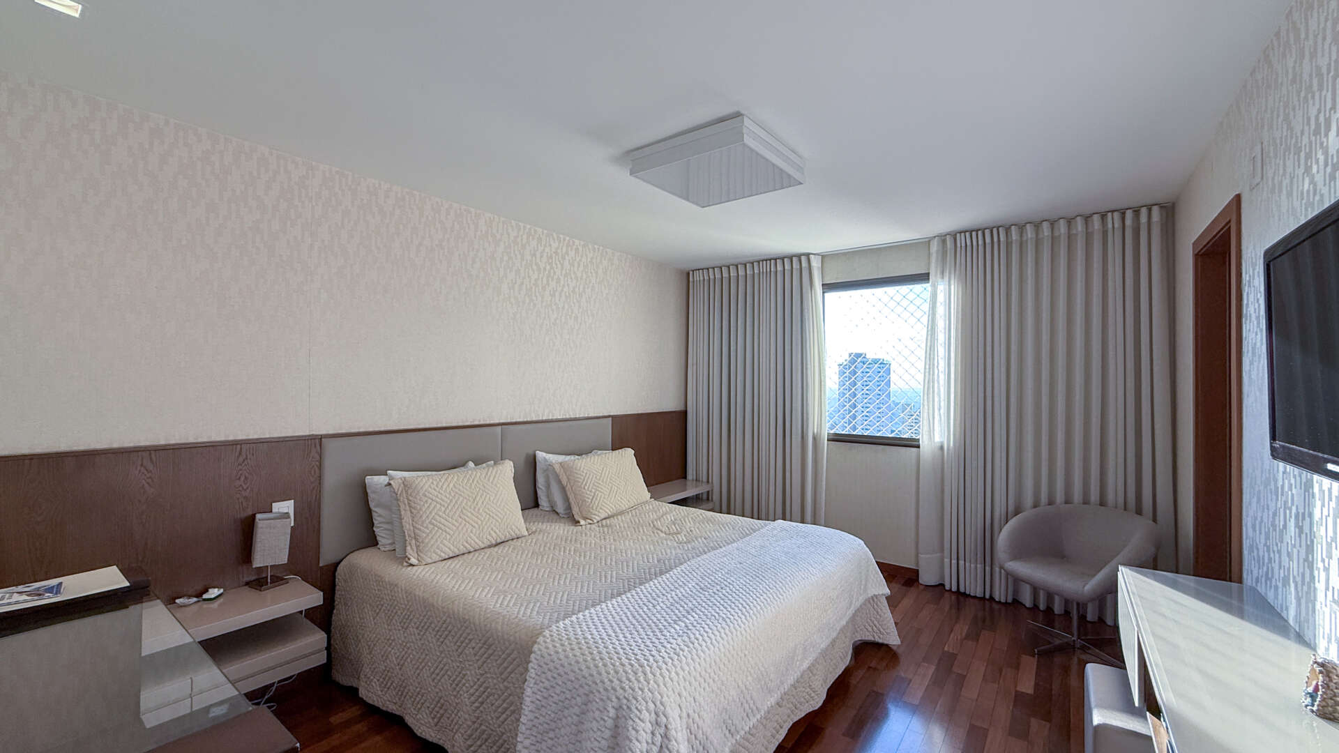 São 4 suítes amplas, sendo a master com closet e hidromassagem, sala para três ambientes com home theater independente, adega climatizada para 80 rótulos e rico em marcenaria planejada em laca. A varanda gourmet é perfeita para receber, com bancada em granito, mesa de jantar para oito lugares, churrasqueira à carvão e uma vista definitiva de Belo Horizonte.