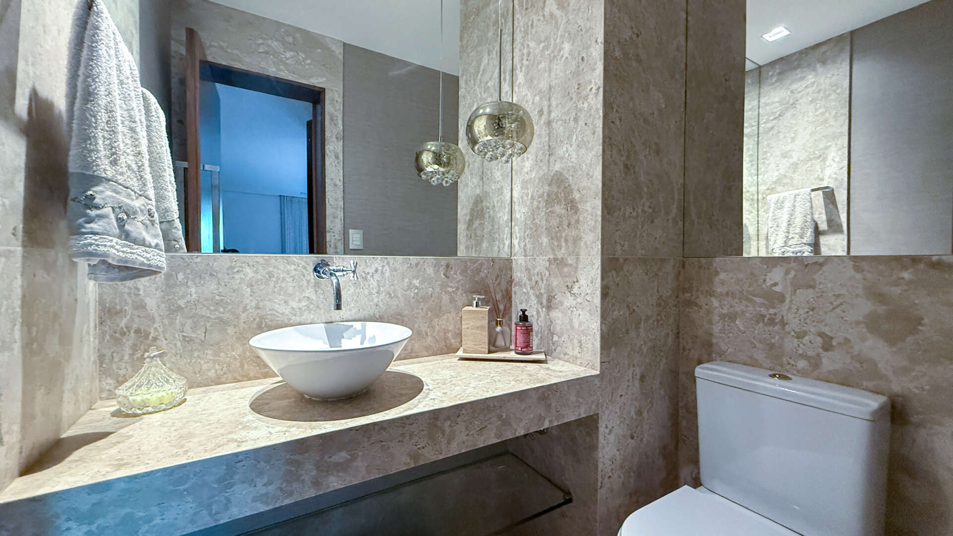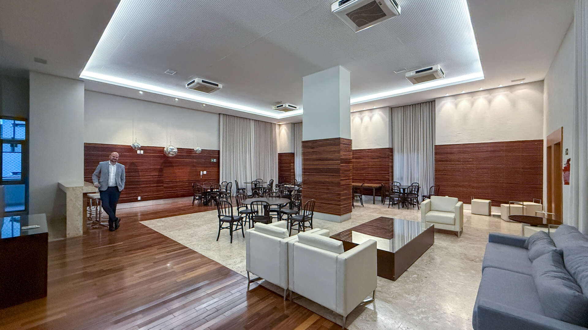 Cozinha completa, DCE e acabamentos premium. Todos os móveis, eletrodomésticos e itens de decoração de alto padrão já estão incluídos.