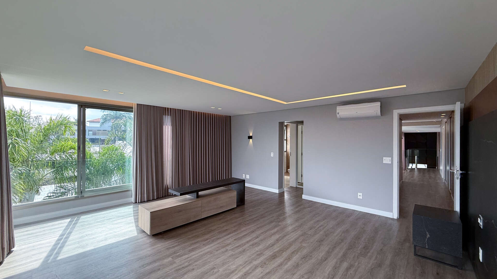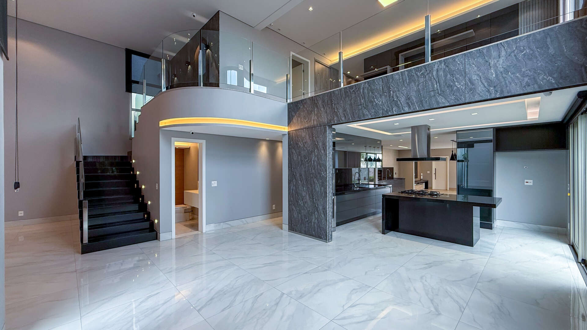 Com 4 suítes, sendo três climatizadas e duas com closet, a casa foi projetada para garantir conforto e privacidade em todos os ambientes. A cozinha com conceito aberto integra-se perfeitamente à área social, podendo ser isolada por divisória quando desejar, adaptando-se à sua rotina e estilo de vida.