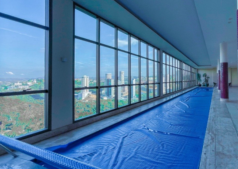 - Piscina de raia coberta e aquecida Apartamento de 4 Quartos, com 4 vagas livres, à venda por R$4.000.000,00 no Edifício Residencial Pucon Vila da Serra, Nova Lima – MG