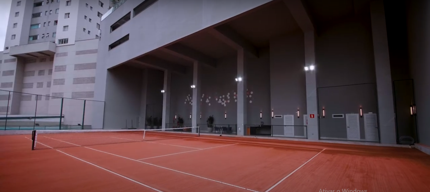 A quadra de tênis de saibro, perfeitamente integrada ao projeto, proporciona momentos de diversão e prática esportiva em um ambiente privilegiado.